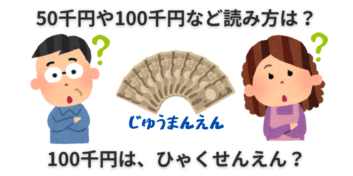 50千円は、5万円ですから、「ごじゅっせんえん」ではなく、「ごまんえん」と読みます。100千円は、10万円ですから、「ひゃくせんえん」ではなく、「じゅうまんえん」ですね!